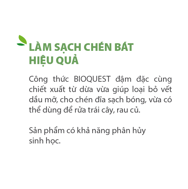 Sản phẩm chứa công thức BIOQUEST đậm đặc giúp làm sạch với hiệu quả tối ưu, có khả năng phân hủy sinh học, an toàn hơn cho sức khỏe gia đình bạn và thân thiện với môi trường.