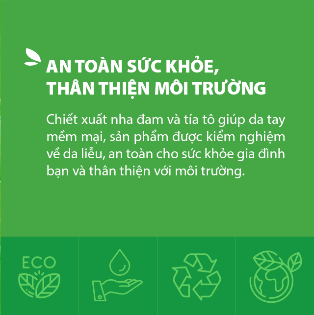 Chiết xuất nha đam và tía tô giúp da tay mềm mại.