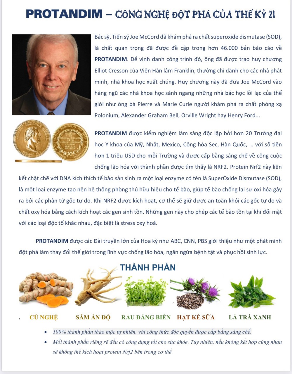 Ngăn ngừa các loại bệnh tật, giúp hệ thống tế bào trong cơ thể trẻ lại như thanh niên ở độ tuổi 20 chính là điều làm nên sự đặc biệt của Protandim. Các kênh truyền hình lớn ở Hoa Kỳ như ABC, CNN, PBS và tờ báo nổi tiếng The Wall Street Journal đã đưa tin về loại sản phẩm này. Người Mỹ xem đây là một sự đột phá trong việc phồng chống lão hóa. Hiện tại đã có hàng triệu người tại Hoa Kỳ tin dùng loại sản phẩm này, và càng ngày Protandim càng phổ biến trên thế giới.